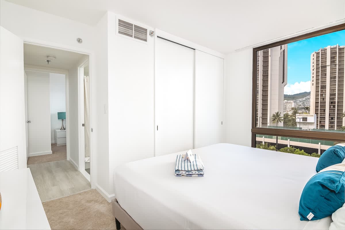 We had a great 3-night stay here with our family of five. The location is fantastic being just one block from Waikiki Beach and an easy walk to the main strip with plenty of shops, restaurants, and activities nearby.The building itself is a little older, but don’t let that fool you. The condo has been beautifully renovated and was clean, modern, and very comfortable. It was perfect for what we needed during our short stay.We flew in from Maui before heading back home to Sydney, so it worked really well as a comfortable base for those last few days. There was a fridge and cooking facilities available, and the free parking was a great bonus as we hired a car while we were there.Overall, a great little place in an excellent location. We would definitely recommend it.
