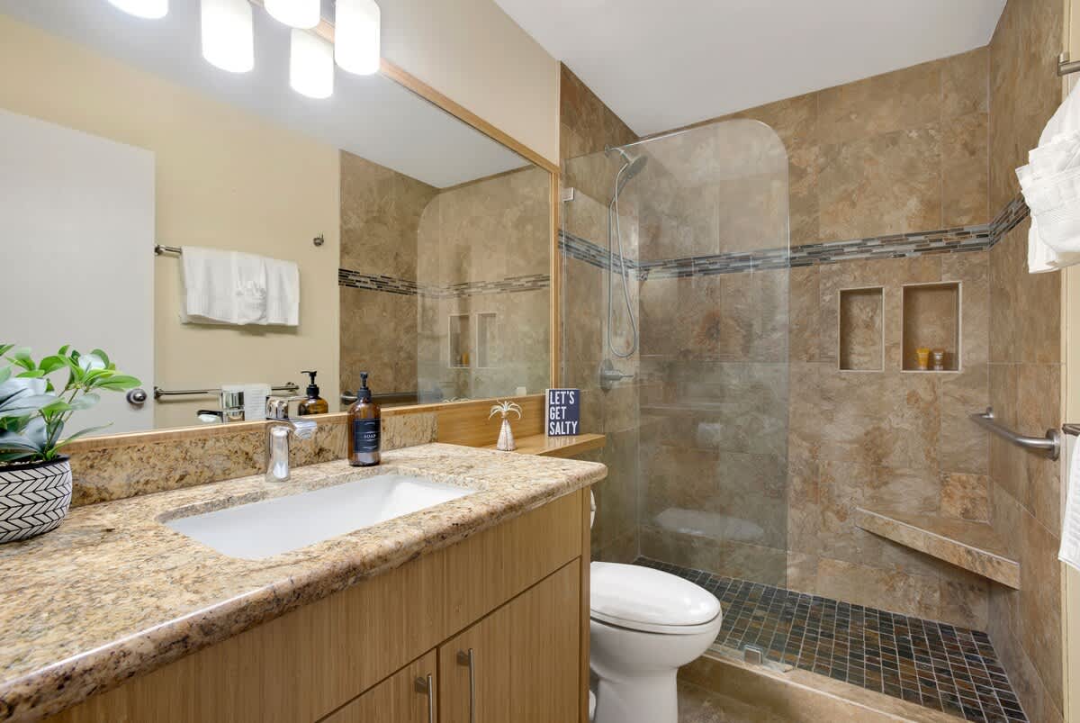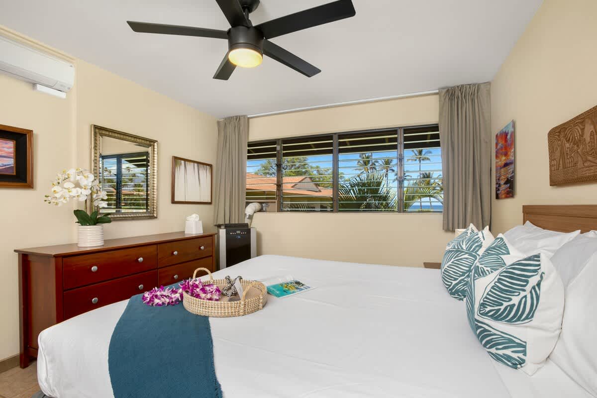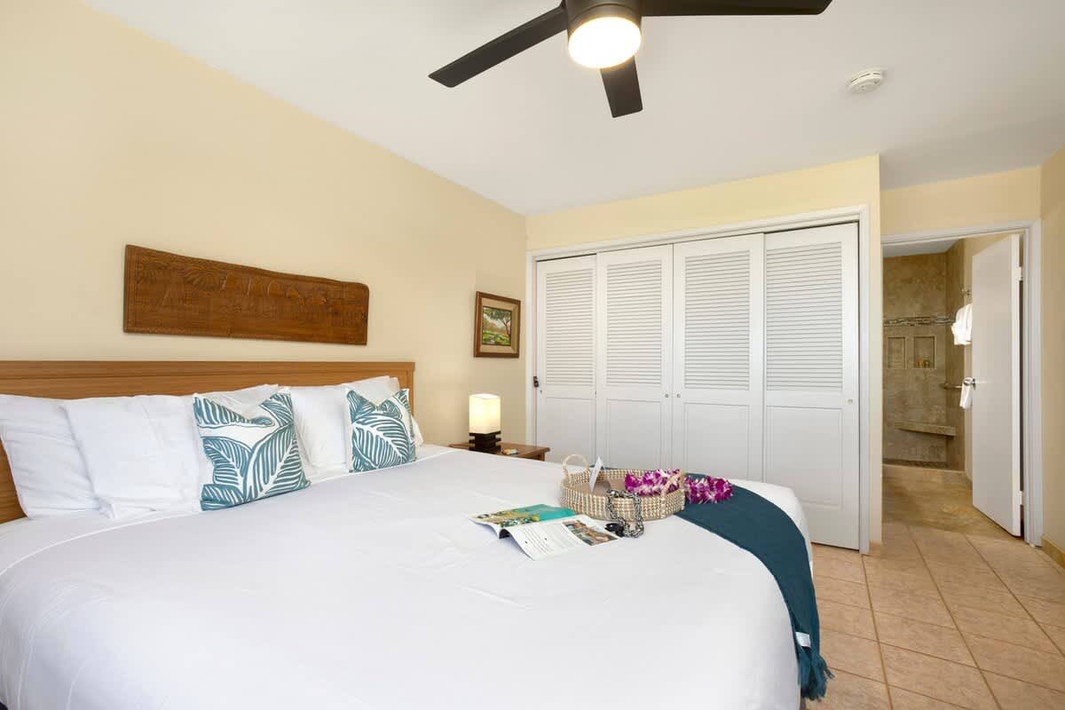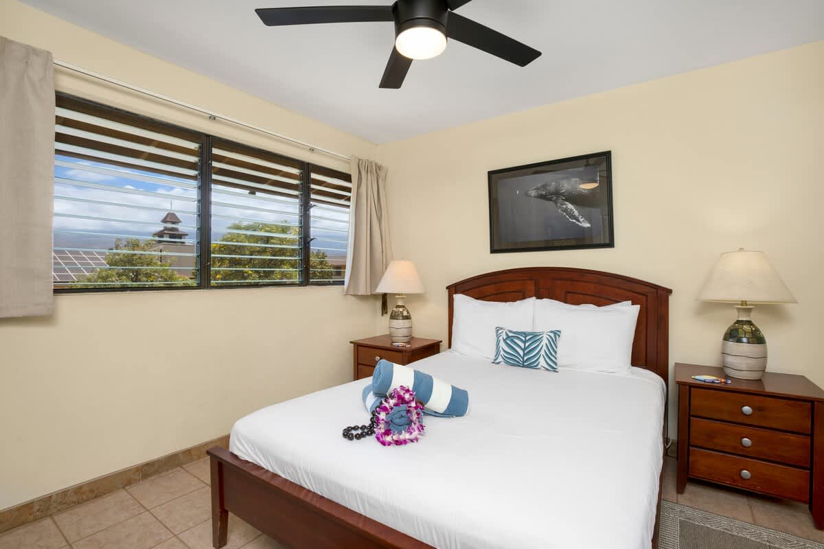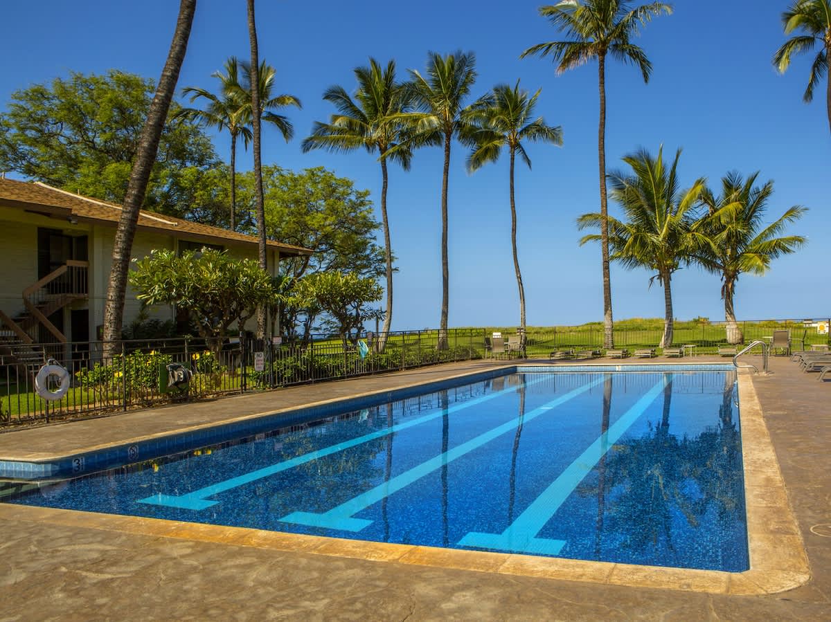 The main bedroom sports a California King bed for you to sprawl onto, split air conditioning, and an en-suite bathroom with all-new glass tile and a walk-in shower. The second bedroom — how luxurious! — has a queen-size mattress and split air conditioning too! To top it all off, this Maui jewel features a beautiful courtyard and gated, 60-foot solar heated pool for soaking up all that Hawaiian sunshine, not to mention gas BBQ grills to satiate your appetite.