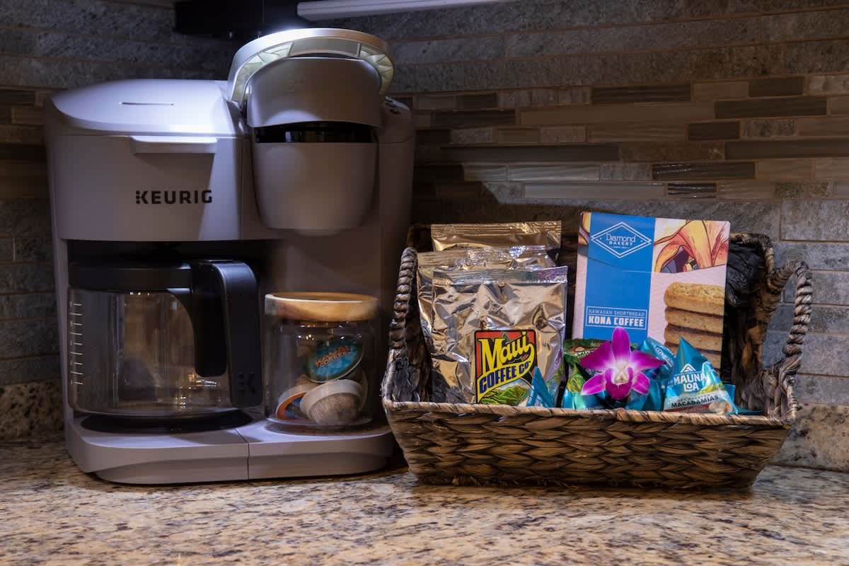 – Fully equipped with a toaster, Keurig coffee maker, rice cooker, blender, kettle, pots, pans, silverware, cookware, and dishes.